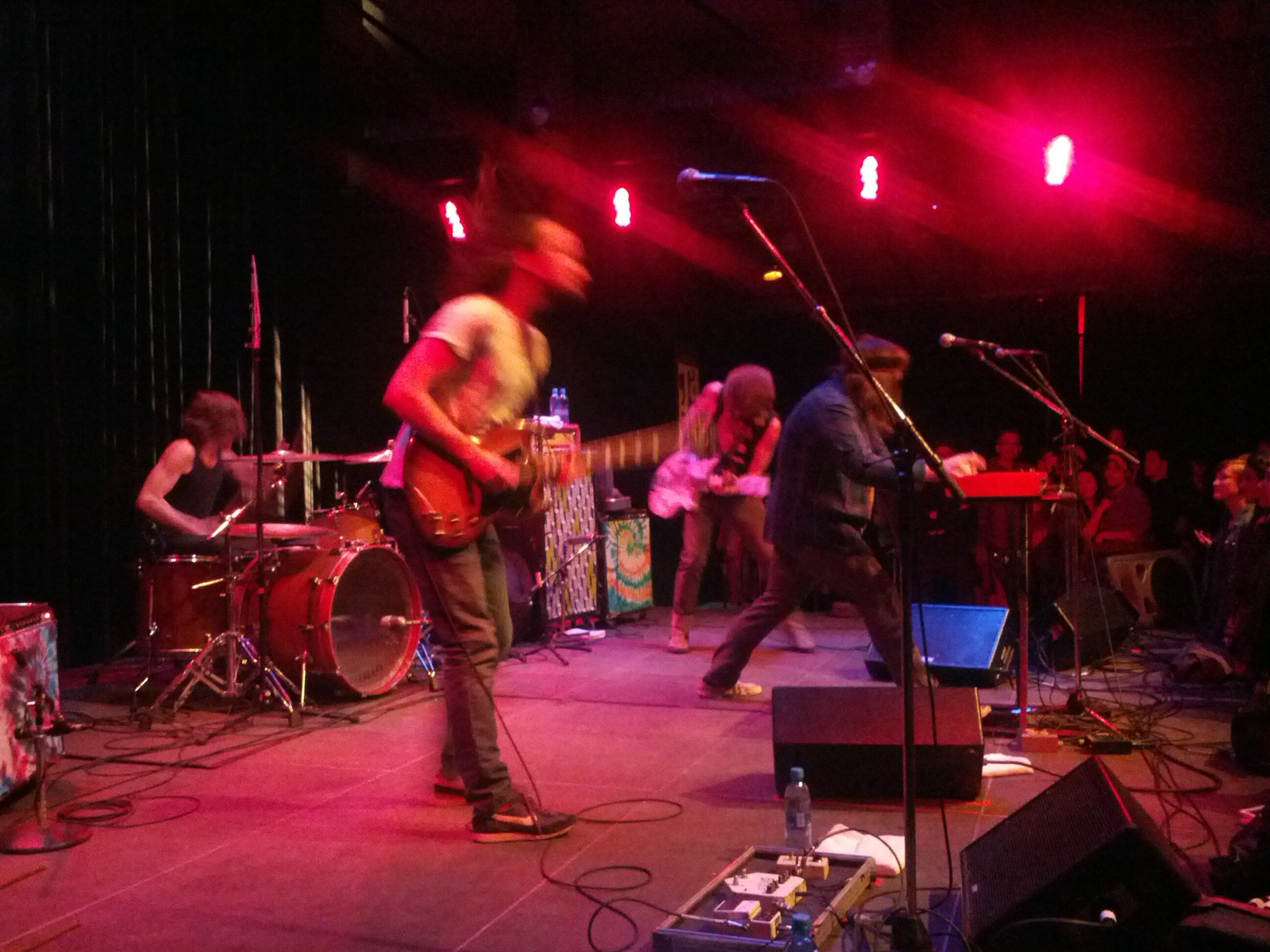 It wasn't long after that when the night was kicked into high gear, with the psychedelic prog-rock-pop of Bend Sinister as they exploded with energy right off the bat with "She Don't Give it Up", the first song from the new album Small Fame. They hardly let up throughout the set with great intensity from all four members; Dan Moxon is a monster on the keys, and he was flanked by guitarist Joseph Blood and Matt Rhode on bass, both of which had rock star energy with their power stances, standing on or straddling the amps, and engaging the crowd to join in.